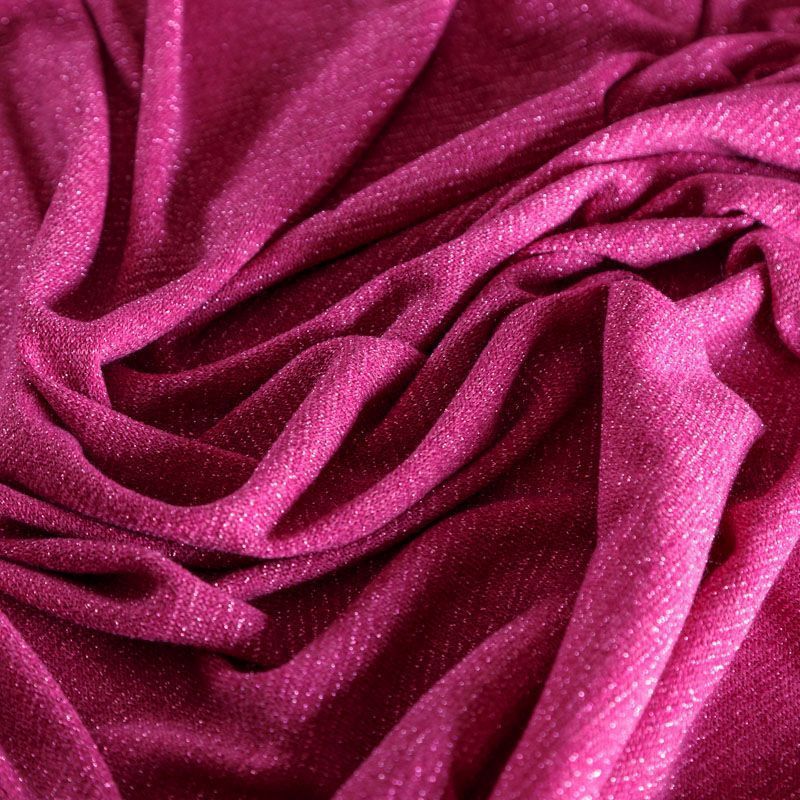 Мягкое и эффектное трикотажное полотно с металлизированным деликатным блеском. Структура полотна плотная, легко растяжимая, эластичная. С лицевой стороны поверхность ткани слегка шероховатая на ощупь, с изнанки трикотаж гладкий, комфортный, подходит для использования без подклада. Отлично пододет для пошива водолазки, платья, топа, леггинсов, спортивных купальников, нарядных изделий.