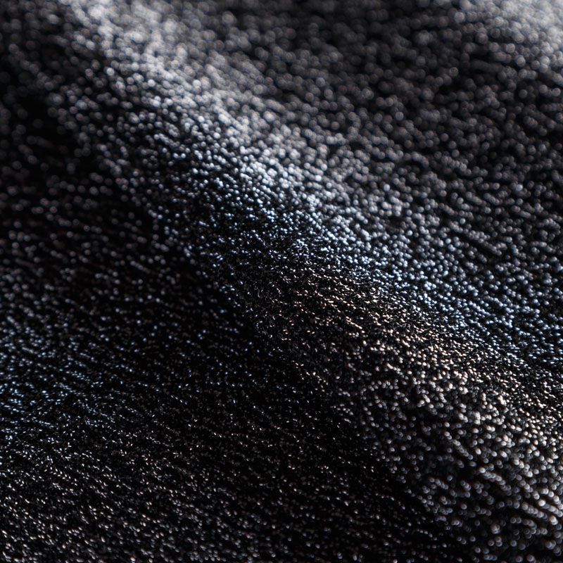 Трикотажное полотно с металлизированным блеском и  мерцанием. Люрексные нити вплетены в структуру полотна и создают объемный "вспененный" эффект, при этом изнанка гладкая и ровная. Ткань очень приятная к телу, не колется, не просвечивается, очень эластичная, отлично драпируется и ниспадает, красиво ляжет по фигуре. Идеальный вариант для пошива вечерних и нарядных платьев облегающего и свободного силуэта, топов, комбинезона, юбки, широких брюк, туник, кардиганов, накидок.