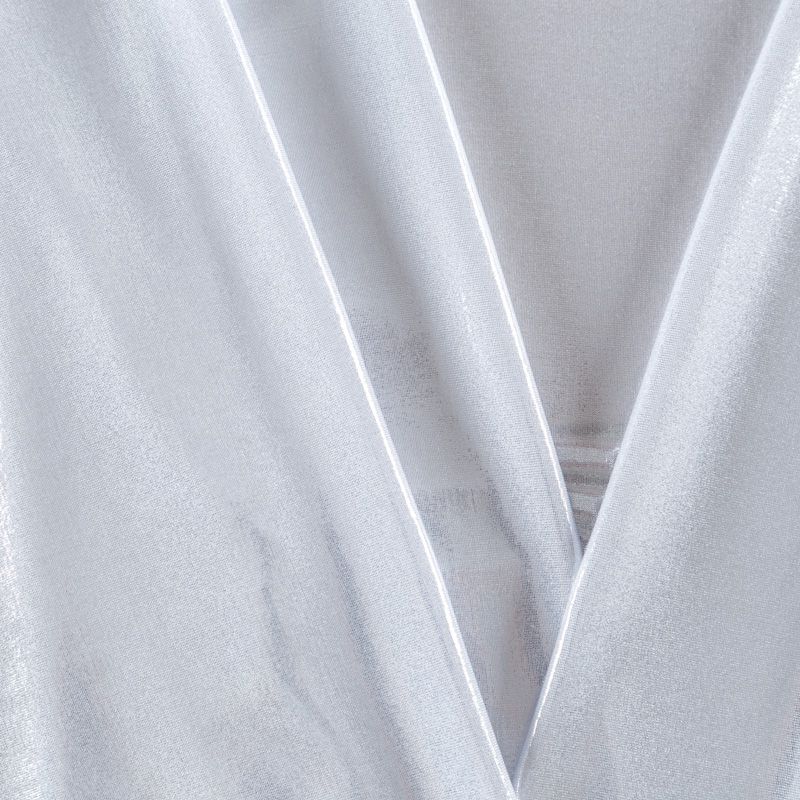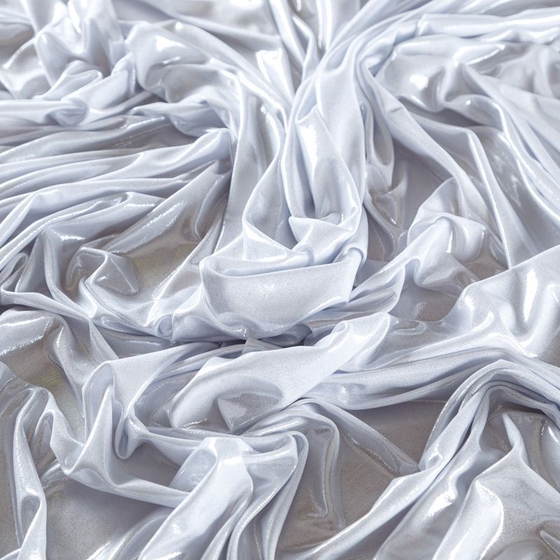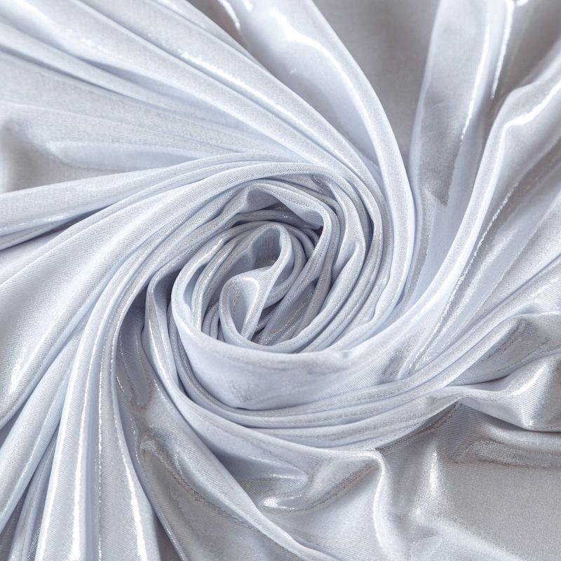 Эффектное трикотажное полотно с мерцающим напылением. Материал очень пластичный, образует струящиеся мягкие складки, отлично тянется, не просвечивает, не мнется. Изнаночная сторона матовая, приятная на ощупь. Идеальный выбор для нарядных платьев, топов, маек, гимнастических и танцевальных костюмов.