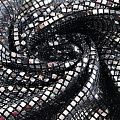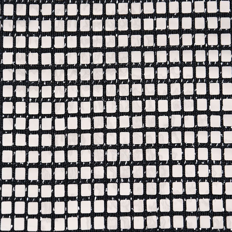 Трикотажное черное полотно с блестящими зеркальными серебристыми квадратными пайетками. Декор накатан на основу, поэтому будет комфортен в носке. Ткань пластичная, прекрасно драпируется и укладывается в складки, легко садится по фигуре за счёт основы с эластаном, не прозрачная, позволит шить изделия без подклада. Идеально подойдет для пошива нарядных вечерних образов: платья, юбки, топа, туники, широких брюк, жакета, кардигана.