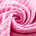 Итальянский шерстяной трикотаж розового оттенка с ажурными вязаными "косами". Полотно плотное, мягкое, эластичное, не просвечивает. Прекрасно подойдет для пошива теплых и уютных свитеров, кардиганов, жилета, платьев, шарфов, палантинов, пончо или снудов.