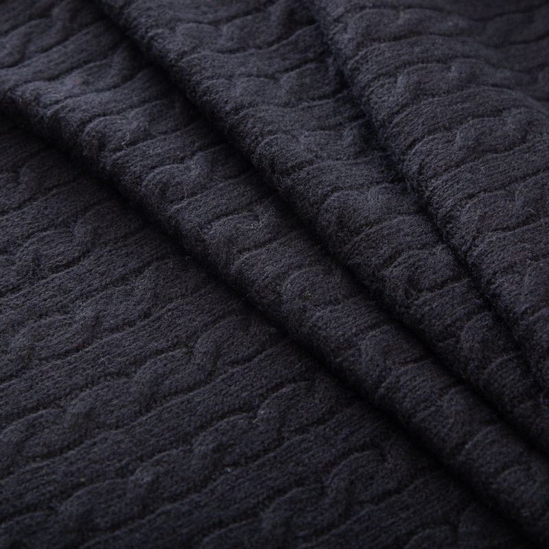 Итальянский вязаный шерстяной трикотаж с косами в черном оттенке. Трикотаж мягкий, матовый, пластичный. Отлично подойдет для пошива платья, кардигана, свитера.