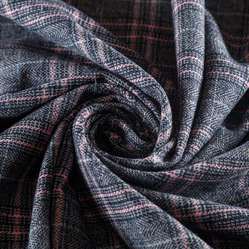 Фактурная и плотная твидовая ткань с добавлением хлопка в красивую черно-серую клетку, которую освежают розовые и голубые полоски. Ткань мягкая, пластичная, приятная на ощупь. Хорошо драпируется и образует формоустойчивые складки. Твид отлично подходит для пошива костюмов, пальто, пиджаков, брюк и курток, юбок, жилетов, головных уборов в классическом стиле.