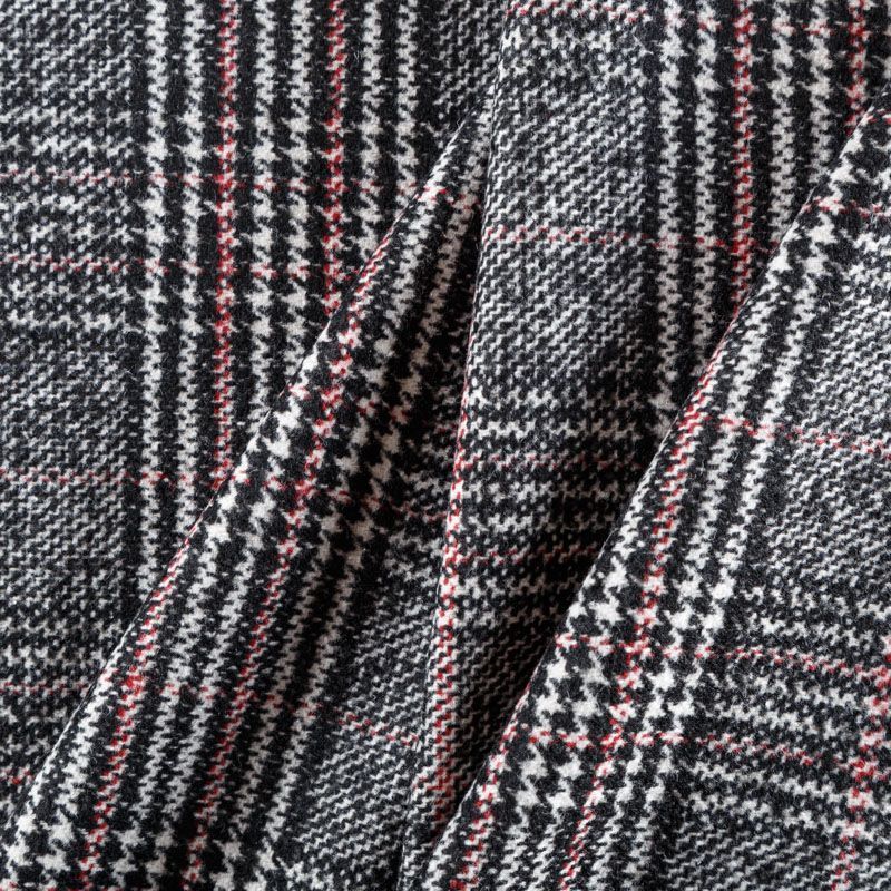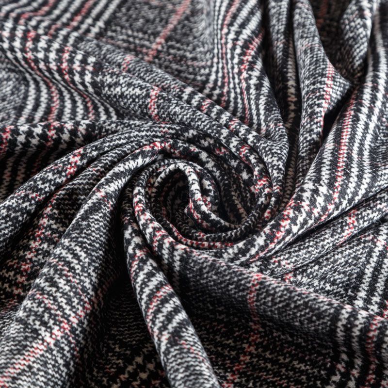 Фактурная твидовая ткань с добавлением хлопка. Сочетание линий белого, черного и розового цвета образуют красивую клетку тартан. Ткань мягкая, пластичная, приятная на ощупь. Хорошо драпируется и образует формоустойчивые складки. Твид отлично подходит для пошива костюмов, пальто, пиджаков, брюк и курток, юбок, жилетов, головных уборов в классическом стиле.