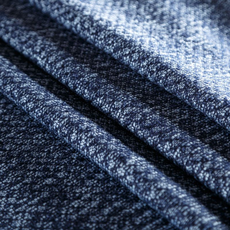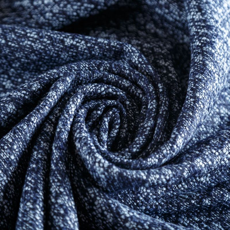 Итальянский шерстяной твид с добавлением шелка в сине-голубых оттенках. Ткань имеет жаккардовую повехность, плотная, в меру объемная с легким эффектом букле из нитей того же цвета, которые образуют мелкий геометрический узор. Твид мягкий, пластичный, умеренно держит форму, прекрасно подойдет для пошива жакетов на подкладке, жилетов, кардиганов, легких пальто, юбок и платьев.
