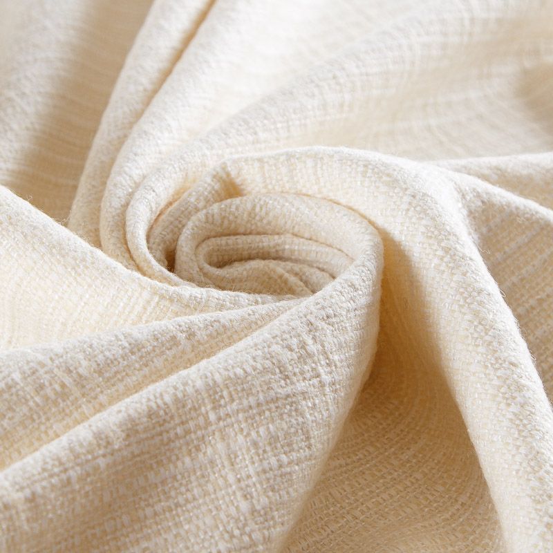 Итальянский смесовый твид в молочном оттенке мягкий, пластичный и с рельефной вывязанной структурой с добавлением хлопка. Твид в стиле Шанель буквально соткан из различных по толщине и текстуре нитей, образующих рисунок в виде клетки. Ткань идеально подходит для пошива платьев, юбок, жакетов, легких пальто, эффектных бомберов и курток.