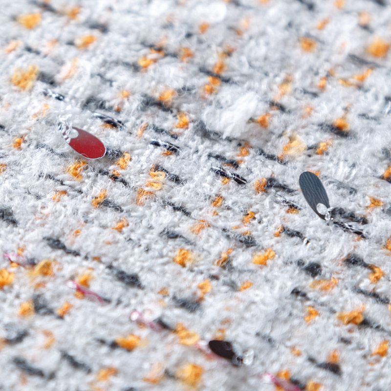 Итальянская мягкая, пластичная и объемная ткань с рельефной структурой. Твид в стиле Шанель буквально соткан из различных по толщине, текстуре и цвету нитей, образующих рисунок в виде клетки и декорирован мелкими пайетками. Твид идеально подходит для пошива платьев, юбок, жакетов, легких пальто, эффектных бомберов и курток.