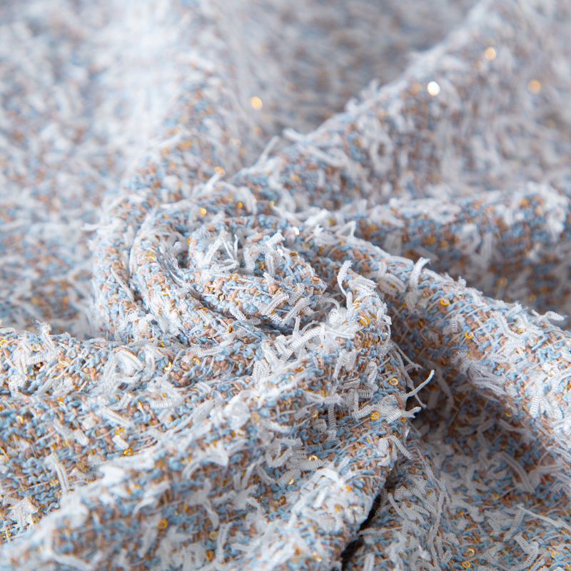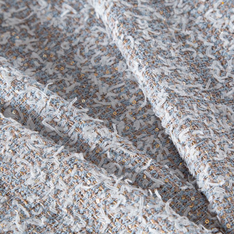 Твид с пайетками 052-20212 бежево-голубой в Уфе