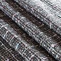 Переплетение разноцветных нитей делает эту ткань универсальной, и в тоже время оригинальной. Полотно плотное, но очень мягкое. Теплое, комфортное. Плетение рыхлое, поверхность фактурная, поэтому изделия выглядят достаточно объемно. Подойдет для пошива костюмов с юбкой, жакетов, облегченных пальто.