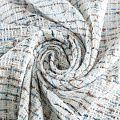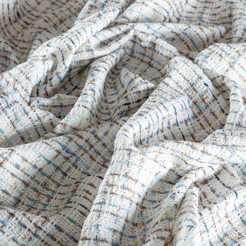 Переплетение разноцветных нитей делает эту ткань универсальной, и в тоже время оригинальной. Полотно плотное, но очень мягкое. Теплое, комфортное. Плетение рыхлое, поверхность фактурная, поэтому изделия выглядят достаточно объемно. Подойдет для пошива костюмов с юбкой, жакетов, облегченных пальто.