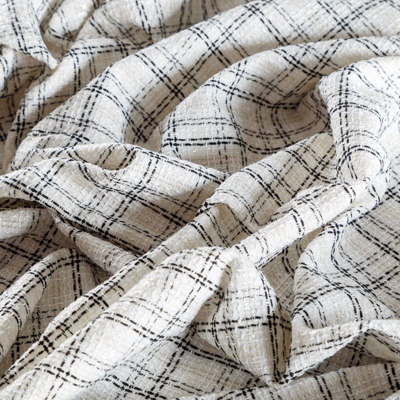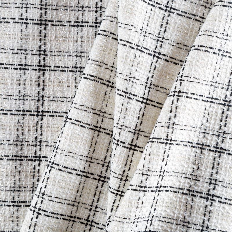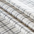Мягкая, пластичная и объемная ткань, с разреженной и рельефной вывязанной структурой. Буклированный твид в стиле Шанель буквально соткан из различных по толщине и текстуре нитей, образующих рисунок в виде клетки. В плетение добавлена блестящая люрексная нить. Твид идеально подходит для пошива платьев, юбок, жакетов, легких пальто, эффектных бомберов и курток.