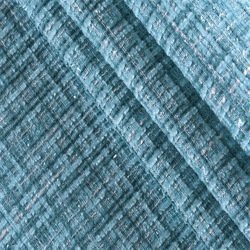 Мягкая, пластичная и объемная ткань, с разреженной и рельефной вывязанной структурой. Буклированный твид в стиле Шанель буквально соткан из различных по толщине и текстуре нитей, образующих рисунок в виде клетки. В плетение добавлена блестящая люрексная нить. Твид идеально подходит для пошива платьев, юбок, жакетов, легких пальто, эффектных бомберов и курток.