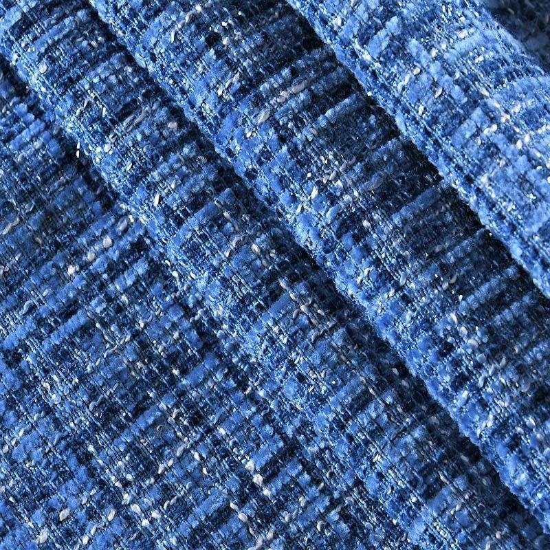 Мягкая, пластичная и объемная ткань, с разреженной и рельефной вывязанной структурой. Буклированный твид в стиле Шанель буквально соткан из различных по толщине и текстуре нитей, образующих рисунок в виде клетки. В плетение добавлена блестящая люрексная нить. Твид идеально подходит для пошива платьев, юбок, жакетов, легких пальто, эффектных бомберов и курток.