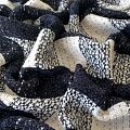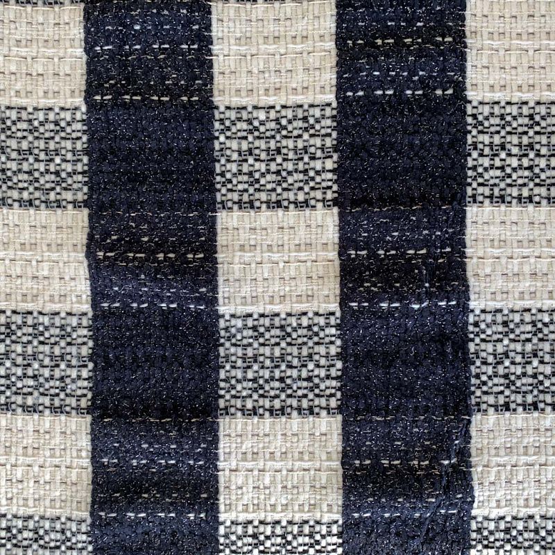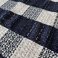 Твид молочного оттенка в крупную синюю клетку, украшенную серебряным люрексом. Ткань не толстая, мягкая, теплая и уютная, хорошо драпируется. Фактура с многочисленными узелками, очень приятная на ощупь. Можно использовать для пошива изделий классического кроя - юбки, жакеты, костюмы или пальто.