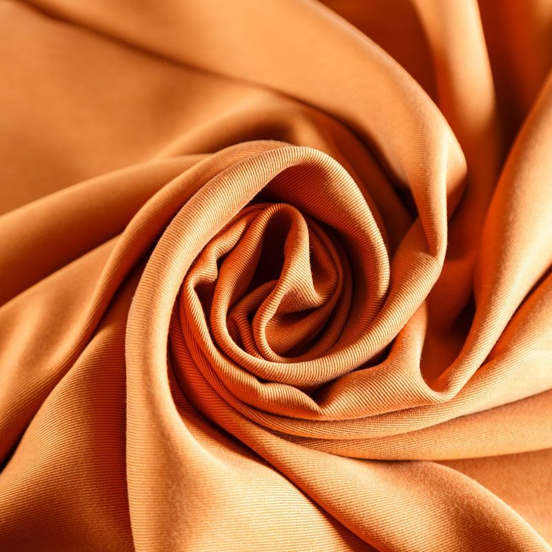 Плотная и мягкая ткань, имеет саржевое плетение и характерный диагональный рубчик на поверхности. Отлично сохраняет форму, не сильно мнется и не деформируется в процессе эксплуатации.  Красиво ложится в складки, поэтому прекрасно подойдет на длинные драпированные юбки и платья, на свободные брюки или шорты, блузки, рубашки или топы.