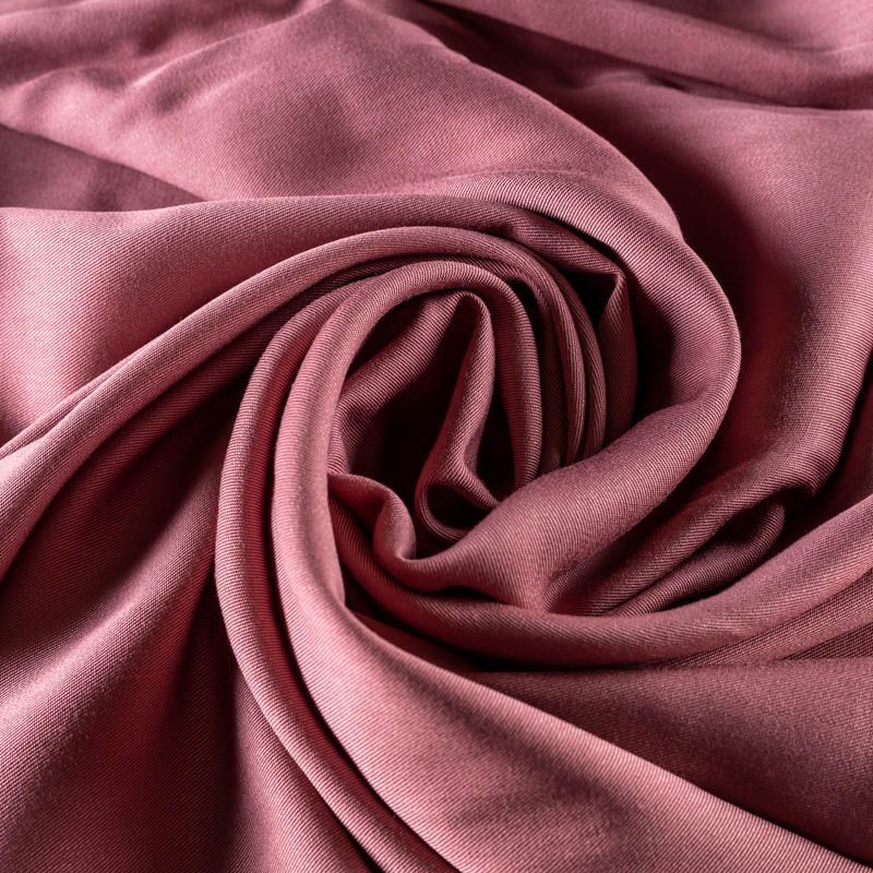 Плотная и мягкая ткань, имеет саржеве плетение и характерный диагональный рубчик на поверхности. Отлично сохраняет форму, не сильно мнется и не деформируется в процессе эксплуатации. Красиво ложиться в складки, поэтому прекрасно подойдет на длинные драпированные юбки и платья, на свободные брюки или шорты, топы.