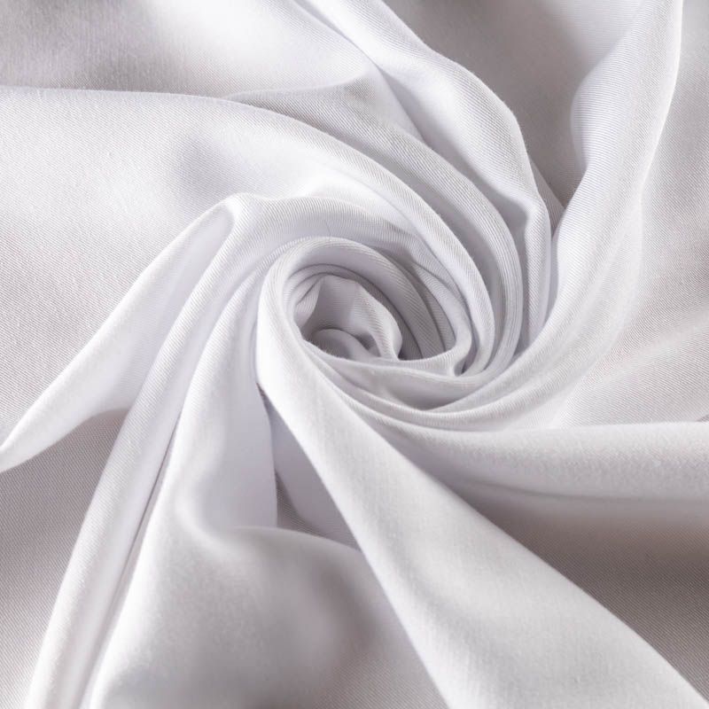 Плотная и мягкая ткань, имеет саржеве плетение и характерный диагональный рубчик на поверхности. Отлично сохраняет форму, не сильно мнется и не деформируется в процессе эксплуатации.  Красиво ложиться в складки, поэтому прекрасно подойдет на длинные драпированные юбки и платья, на свободные брюки или шорты, топы.