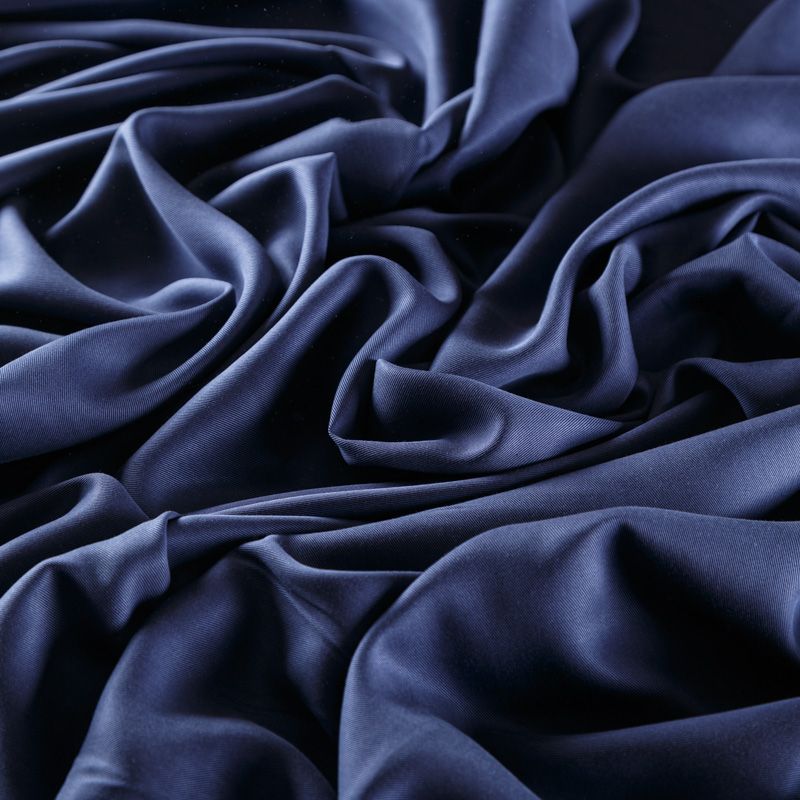 Шикарный твиловый тенсел в темно-синем оттенке. Ткань создана искусственным путем из натуральных волокон, средней плотности, дышит, не просвечивает, не тянется, имеет характерное саржевое плетение. Очень приятна к телу, мягко лежит в складке и драпируется, красиво ниспадает фалдами. Эффектно будет смотрется в платье, юбке, рубашке, костюме в пижамном стиле.
