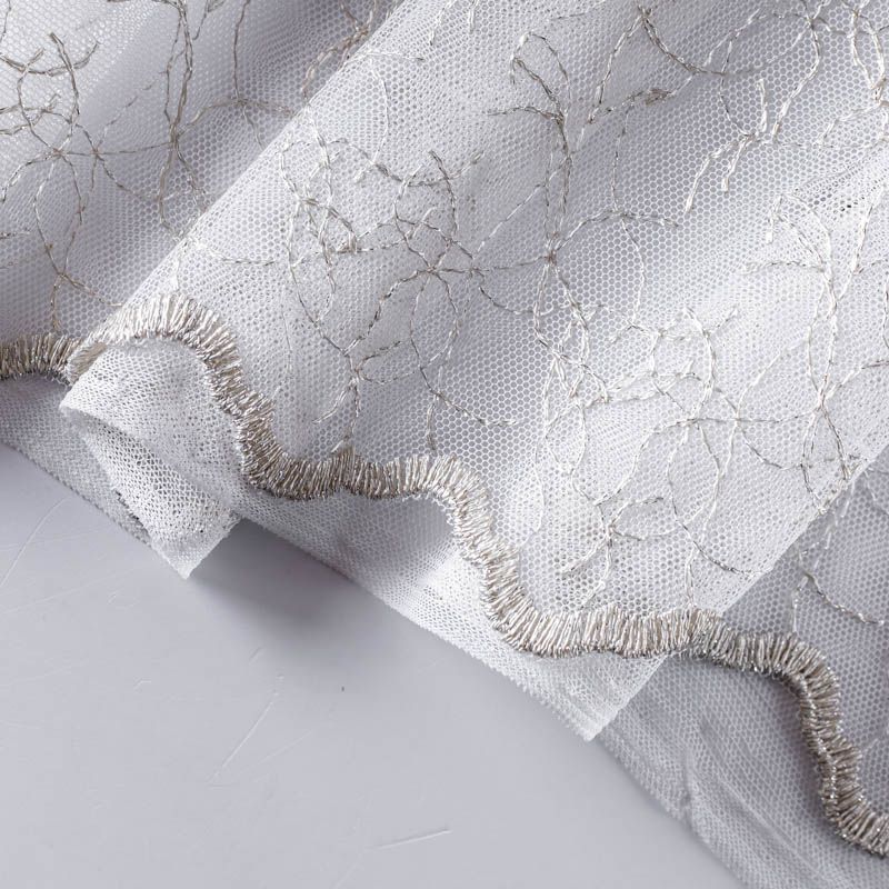 Сетка с вышивкой – это роскошный элемент дизайна, который преобразит любое помещение. Она отлично пропускает воздух, поэтому быстро сохнет после стирки. Прочная, ткань прослужит долго. Выдерживает большое количество стирок. Легкая, фактура ткани практически невесома, поэтому можно не опасаясь крепить ее даже на самый тонкий карниз. Вышивка в виде стилизованной паутинки расположена по всей высоте ткани, нижний край без утяжелителя, фигурный.