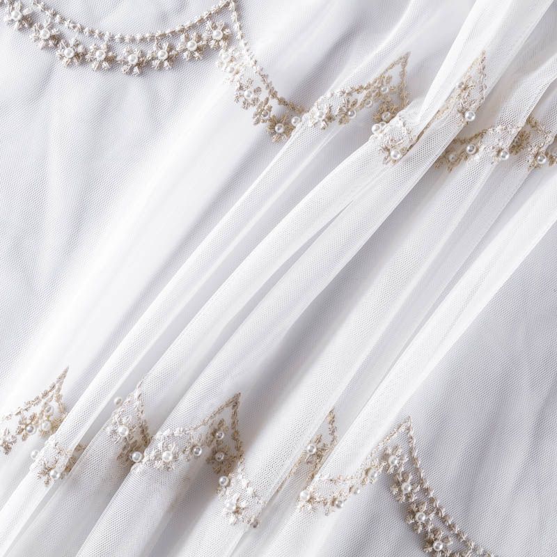 Сетка с вышивкой – это роскошный элемент дизайна, который преобразит любое помещение. Она отлично пропускает воздух, поэтому быстро сохнет после стирки. Прочная, ткань прослужит долго. Выдерживает большое количество стирок. Легкая, фактура ткани практически невесома, поэтому можно не опасаясь крепить ее даже на самый тонкий карниз. Нежная цветочная вышивка с круглыми бусинами в тон тюля расположена ярусами, нижний край украшен вышитым фестоном, без утяжелителя, фигурный.