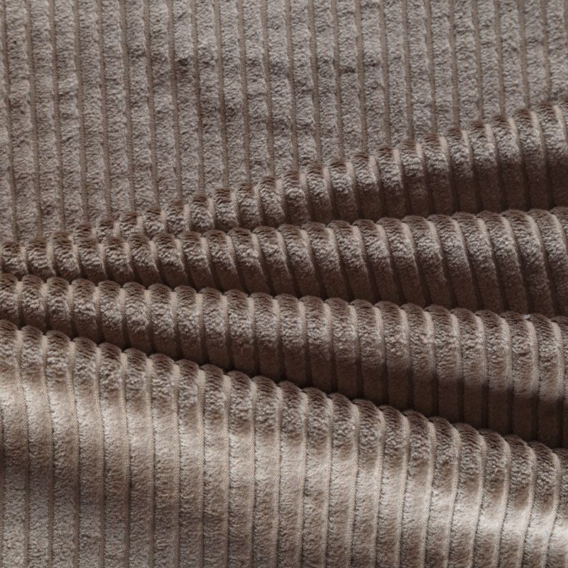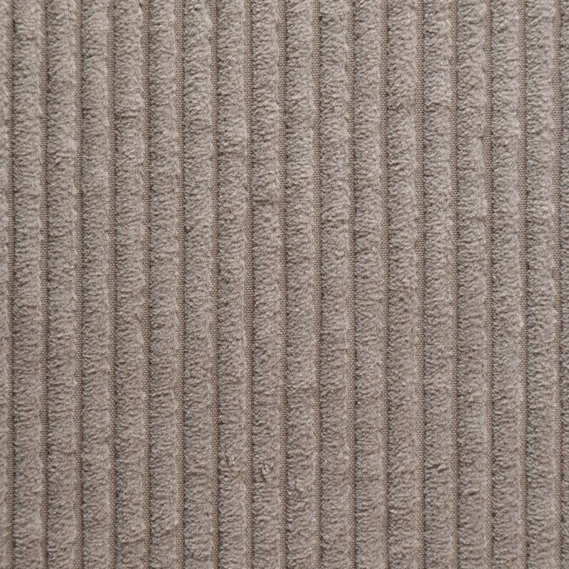 Итальянский хлопковый вельвет костюмно-плательной плотности холодного коричневого оттенка. Ткань имеет матовую фактурную поверхность в мягкий широкий рубчик, ворс короткий и приятный на ощупь. Хорошо драпируется и держит форму. Прекрасный вариант для пошива костюма, юбки, широких брюк, шорт, комбинезона, жакета, куртки или тренча.