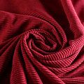 Плательно-костюмный вельвет средней плотности, но удивительно мягкий с матовым блеском и бархатистой поверхностью. За счет вытравки ворса лицевая сторона фактурная, в рубчик средней толщины. Ткань очень пластичная, хорошо и мягко драпируется, не мнется. Прекрасно подходит для пошива костюмов, жакетов, платьев, юбок, брюк, шорт, а также  для изготовления даже детской одежды.