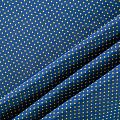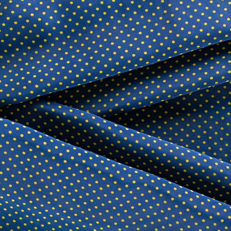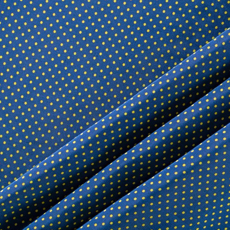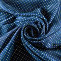 Плательно-рубашечная итальянская вискоза синего оттенка с принтом в мелкий горошек. Натуральная, дышащая ткань, очень приятная к телу, отлично драпируется, струится, не просвечивает. Хорошо подойдет для пошива платьев, рубашек, платьев-рубашек, блуз, юбок, брюк, летних костюмов, пыльников, детской одежды.
