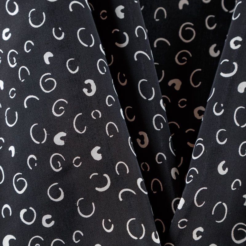 Итальянская плательно-блузочная вискоза с абстрактным принтом на черном фоне. Ткань очень пластичная, отлично драпируется и струится, мягкая и приятная на ощупь, не просвечивает. Прекрасно подойдет для пошива платья, рубашки, топа, блузки, юбки, летнего костюма.