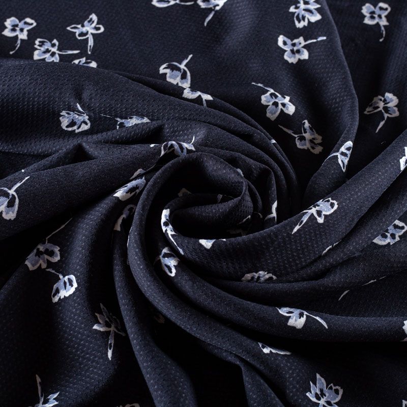 Итальянская жаккардовая вискоза черного цвета с мелким цветочным принтом . Ткань тонкая, слегка просвечивает, отлично драпируется и струится, приятная на ощупь. Прекрасно подойдет для пошива платья, сарафана, топа, блузки, юбки, пижамного костюма.