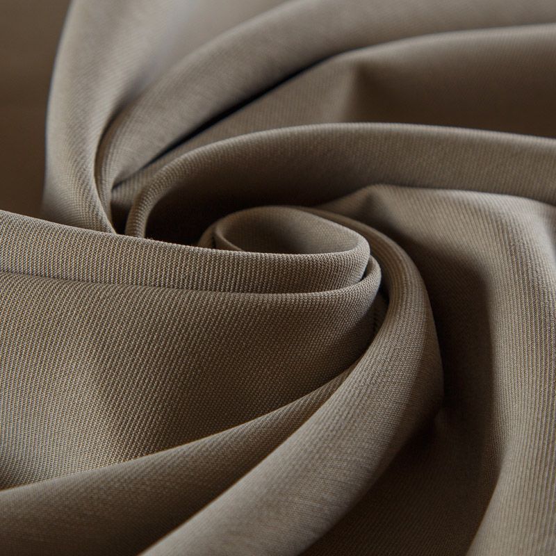 Качественная плотная костюмно-плательная вискоза в песочном оттенке. Ткань с диагональным плетением, имеет небольшой благородный матовый блеск, тяжелая, не тянется, прекрасно драпируется и держит форму. Идеально подойдет для пошива костюмов, брюк-карго, джоггеров, платьев, юбок, шорт, пиджаков, комбинезонов, летних парок и тренчей.