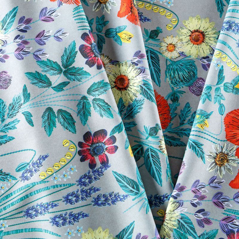 Легкая набивная ткань с цветочным принтом имеет высокую прочность, большую износоустойчивость. Ткань упругая, мягкая и хорошо драпируется, тянется за счет эластана в составе, образует струящиеся складки. Идеально подойдет для пошива блуз, юбок, платьев, сарафанов.