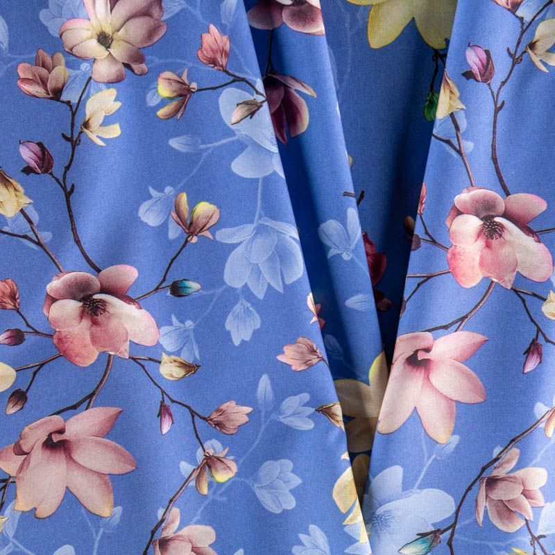 Легкая набивная ткань имеет высокую прочность, большую износоустойчивость. Ткань упругая, мягкая и хорошо драпируется, образует струящиеся складки. Идеально подойдет для пошива блуз, юбок, платьев, сарафанов.