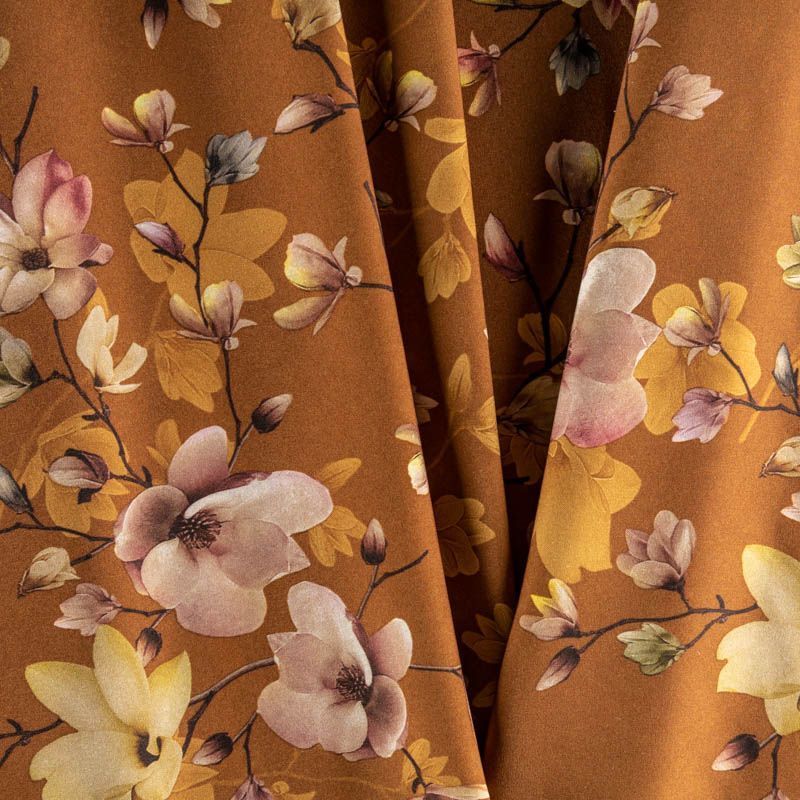 Легкая набивная ткань имеет высокую прочность, большую износоустойчивость. Ткань упругая, мягкая и хорошо драпируется, образует струящиеся складки. Идеально подойдет для пошива блуз, юбок, платьев, сарафанов.