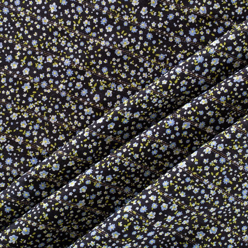 Итальянская плательно-блузочная вискоза с мелким цветочным принтом на черном фоне декорирована тонкой люрексовой полоской. Ткань очень пластичная, отлично драпируется и струится, мягкая и приятная на ощупь, не просвечивает. Прекрасно подойдет для пошива платья, топа, блузки, юбки.