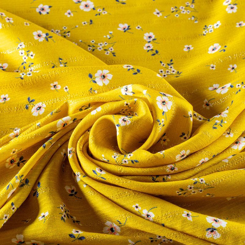 Итальянская плательно-блузочная вискоза с мелким цветочным принтом на грушевом фоне декорирована тонкой люрексовой полоской. Ткань очень пластичная, отлично драпируется и струится, мягкая и приятная на ощупь, не просвечивает. Прекрасно подойдет для пошива платья, топа, блузки, юбки.