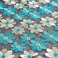 Итальянское полотно молочного цвета с геометрическим узором, вышитом на тонкой сетке с мелкой ячейкой, сетка мягкая, пластичная, матовая, не держит форму. Прекрасно подойдет для вечерних платьев, юбок, топов, бюстье. Эффектно смотрится на теле без подкладочной ткани, например, рукава платья.