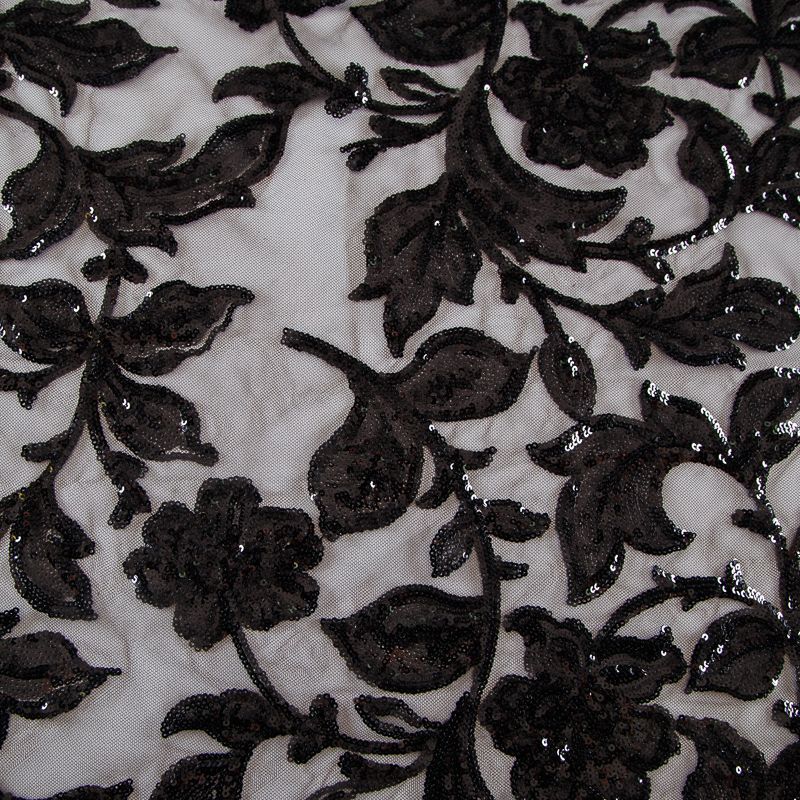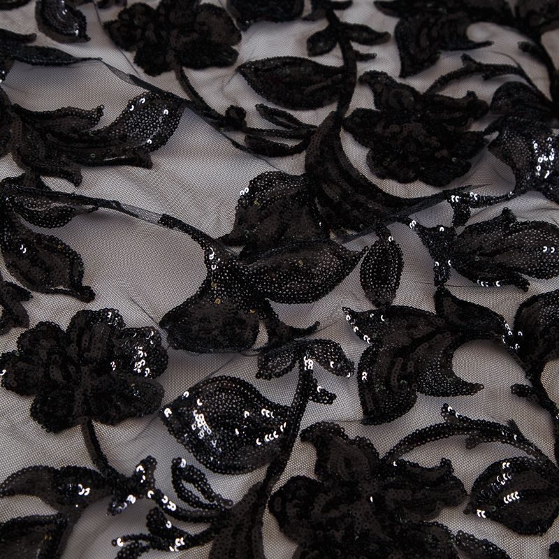 Вышивка с пайетками на сетке Armani 050-19126 черный в Уфе