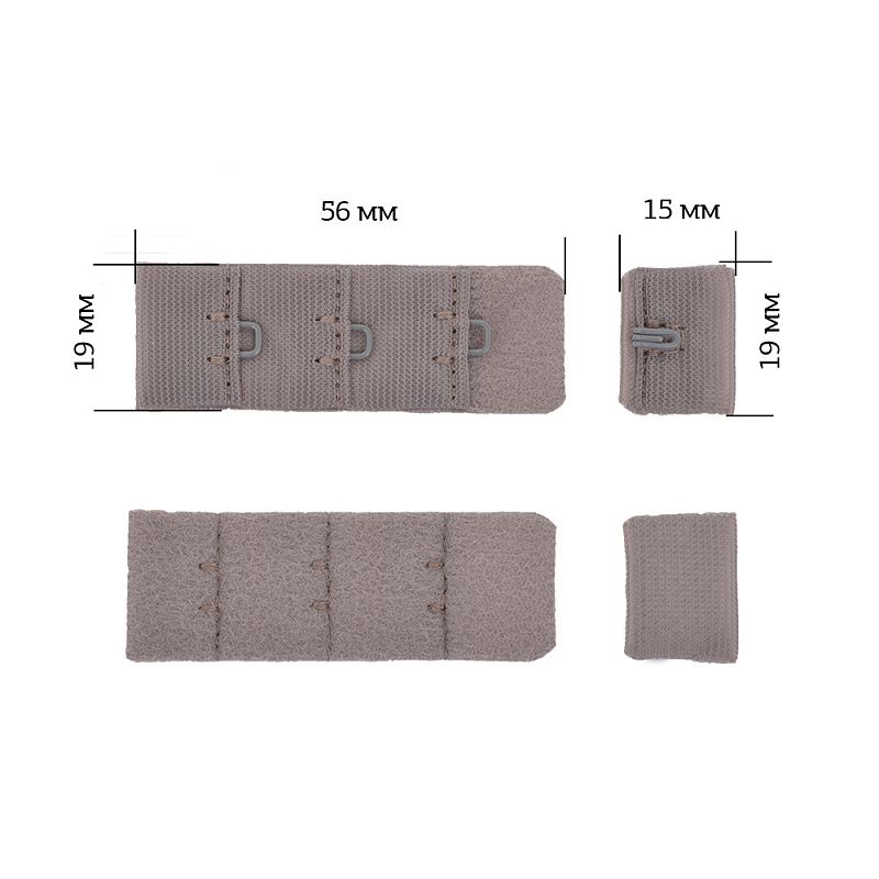 Текстильная застежка с 1 крючками и 3 рядами петель для бюстгальтера, ширина по линии втачивания 19 мм.