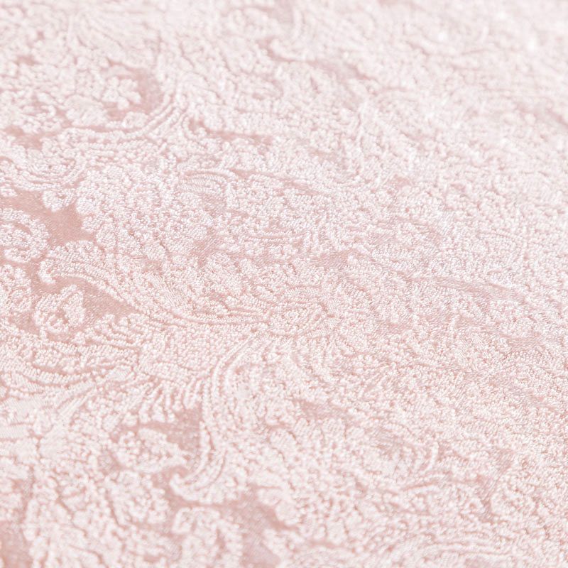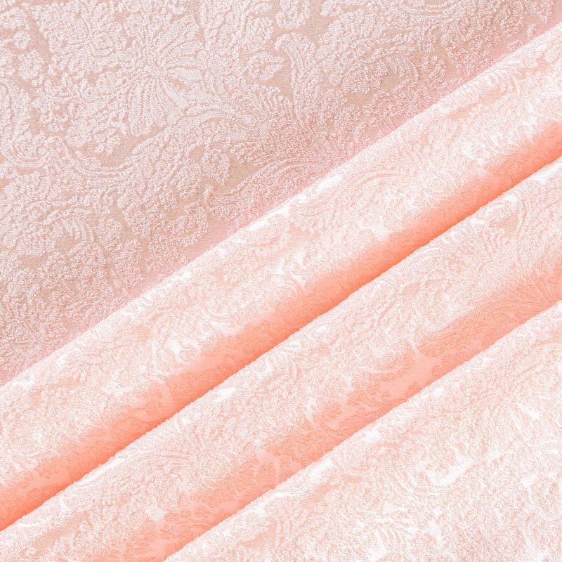 Итальянский жаккард с красивым орнаментом оттенка розового жемчуга. Ткань легкая, но плотная, поверхность со сдержанным блеском, объемная и текстурная, хорошо драпируется и держит форму, тянется за счет эластана в составе, не просвечивает. Подойдет для пошива нарядных вечерних костюмов, корсетов, платьев-футляров, жакетов, топов, легких пальто, бомберов, юбок или шорт.