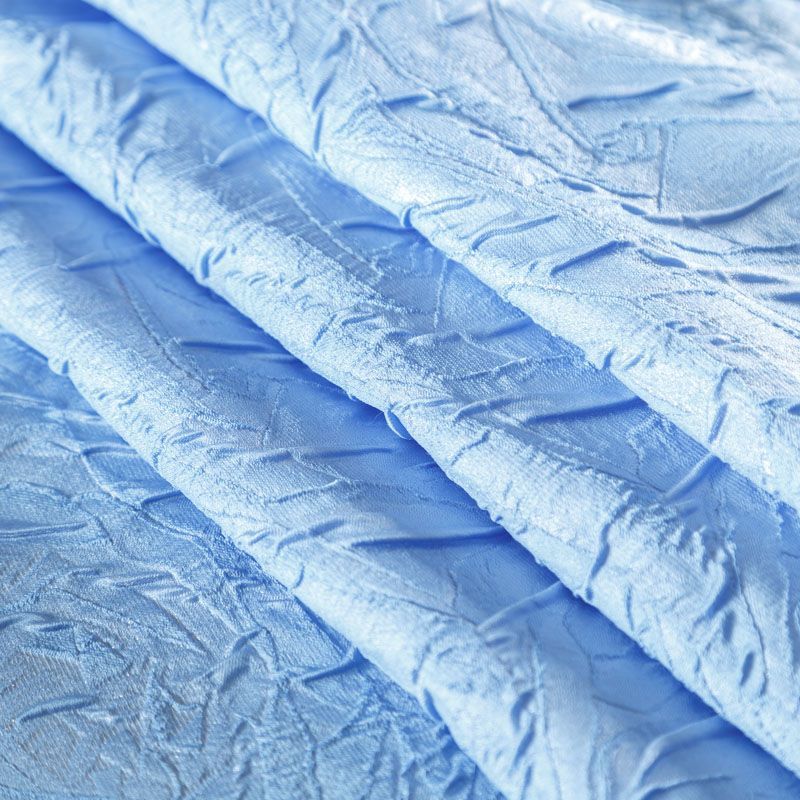 Нарядный итальянский 3D жаккард в холодном голубом оттенке. Ткань легкая, но плотная, поверхность со сдержанным блеском объемная и текстурная, хорошо драпируется и держит форму, не тянется, не просвечивает. Подойдет для пошива нарядных вечерних костюмов, платьев, жакетов, топов, легких пальто, бомберов, юбок или шорт.