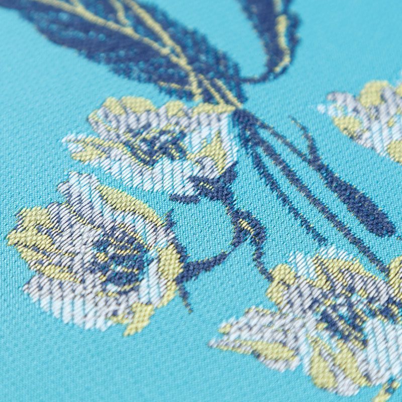 Итальянский жаккард в голубом оттенке с цветочным дизайном. Ткань легкая, но плотная, поверхность матовая и гладкая, хорошо драпируется и держит форму, не тянется, не просвечивает. Подойдет для пошива нарядных вечерних костюмов, платьев-футляров, жакетов, топов, летних пальто, бомберов, юбок или шорт.