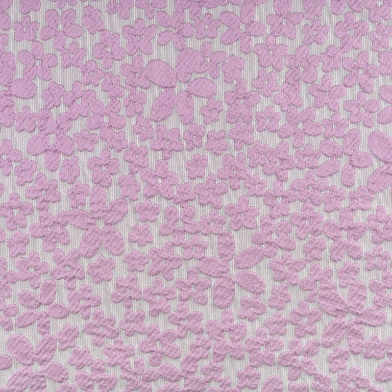 Молочный рельефный фон итальянского жаккарда дополнен узором из объемных разновеликих цветов простой формы нежного розового оттенка. Ткань легкая, средней плотности, не просвечивает, не тянется. Хорошо держит форму и драпируется. Идеально подойдет для платьев различных силуэтов, костюмов, жакетов, юбок, шорт, легких пальто.