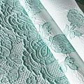 Итальянский атласный жаккард с нежным дизайном пейсли и цветов в мятных оттенках. Ткань легкая, поверхность фактурная со сдержанным блеском, хорошо драпируется, не тянется и не просвечивает. Рисунок сосредоточен вдоль кромки, поэтому жаккард на изделие набирается объемом. Подойдет для пошива нарядных вечерних костюмов, платьев-футляров или стиле Dior, жакетов, топов, летних пальто, бомберов, юбок или шорт.