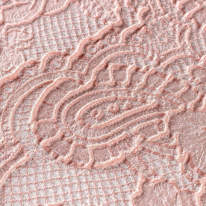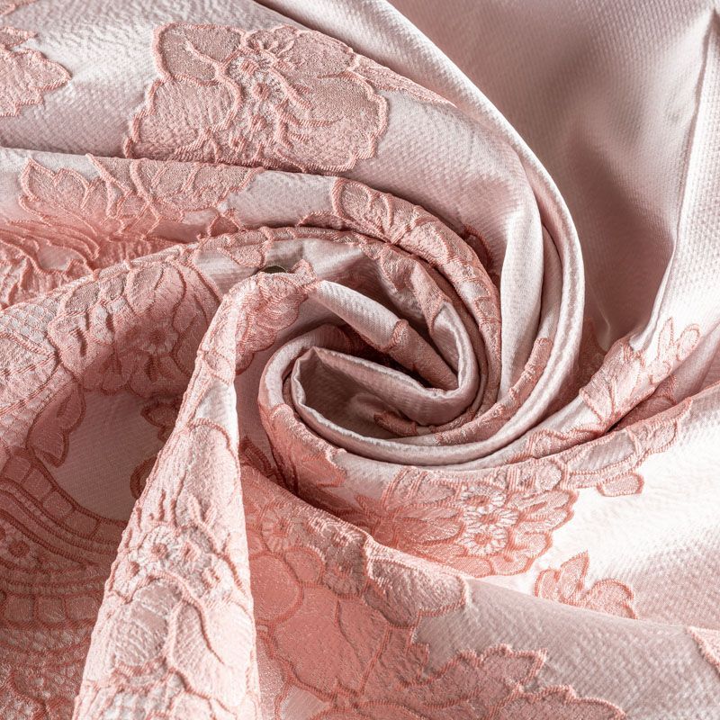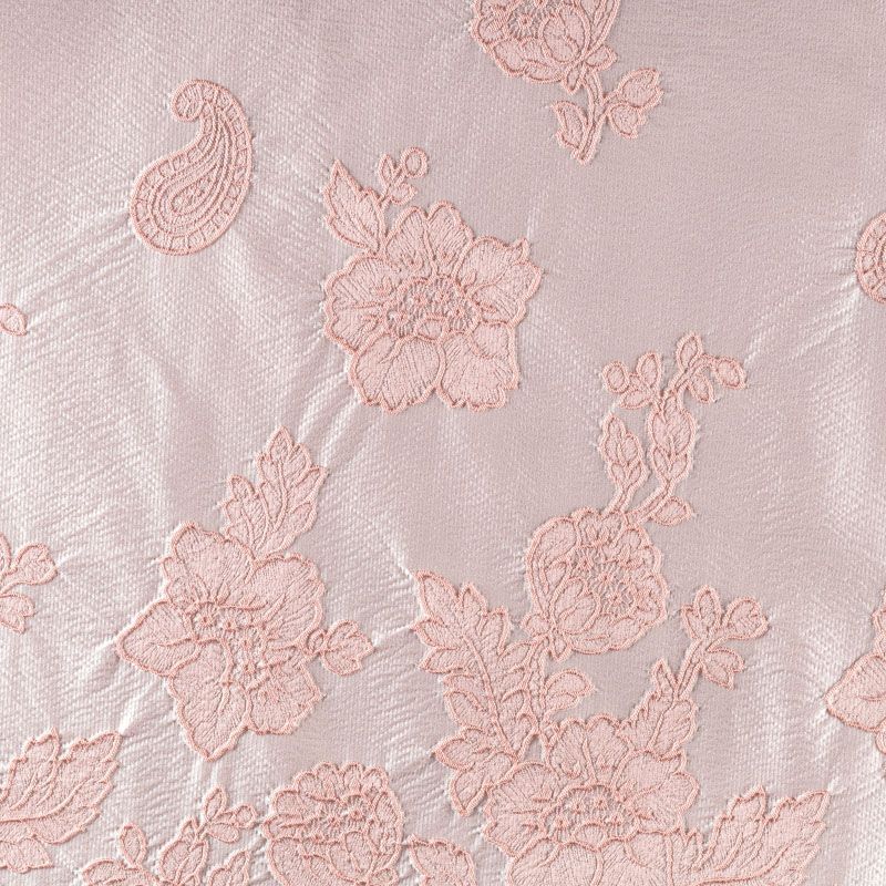 Итальянский атласный жаккард с нежным дизайном пейсли и цветов в розовых оттенках. Ткань легкая, поверхность фактурная со сдержанным блеском, хорошо драпируется, не тянется и не просвечивает. Рисунок сосредоточен вдоль кромки, поэтому жаккард на изделие набирается объемом. Подойдет для пошива нарядных вечерних костюмов, платьев-футляров или стиле Dior, жакетов, топов, летних пальто, бомберов, юбок или шорт.