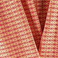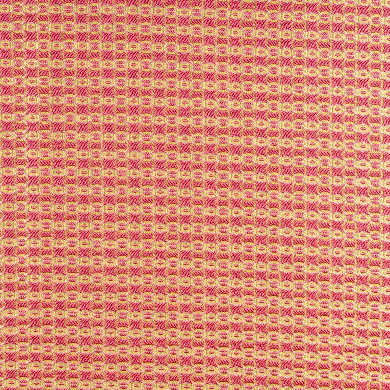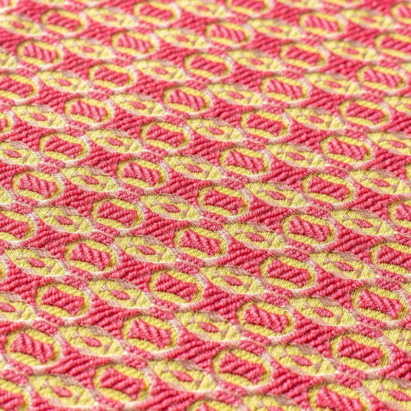 Мягкий жаккард в ярком коралловом оттенке с мелким абстрактным узором желтого цвета. Ткань пластичная, непрозрачная, поверхность фактурная в рубчик, приятная на ощупь, тянется, немного держит форму, хорошо драпируется красивыми складками. Будет комфортна для пошива костюма, женственного платья, юбки, брюк, легкого пальто, мягкого бомбера.