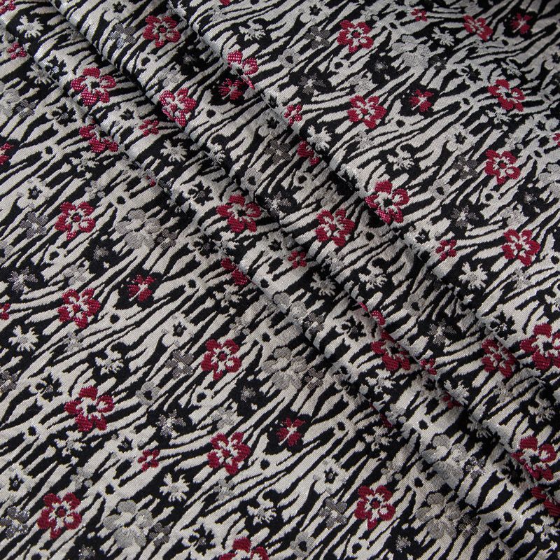 Итальянский жаккард с добавлением люрексовой серебристой нити с мелким цветочным дизайном. Ткань легкая, но плотная, поверхность матовая, фактурная, хорошо драпируется и держит форму, не тянется и не просвечивает. Подойдет для пошива нарядных вечерних костюмов, платьев-футляров в стиле Dior, жакетов, топов, летних пальто, бомберов, юбок или шорт.