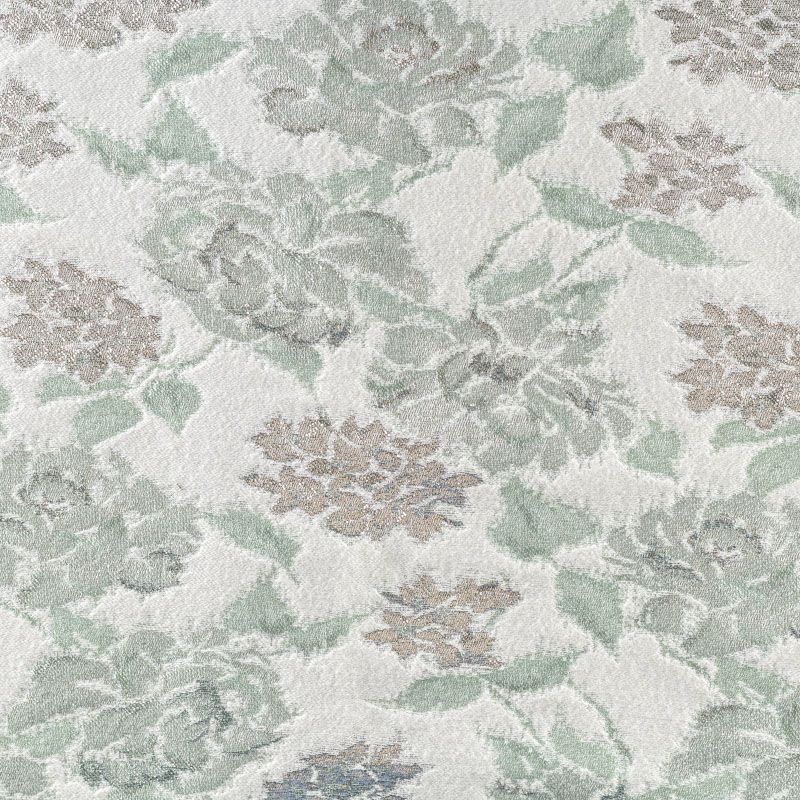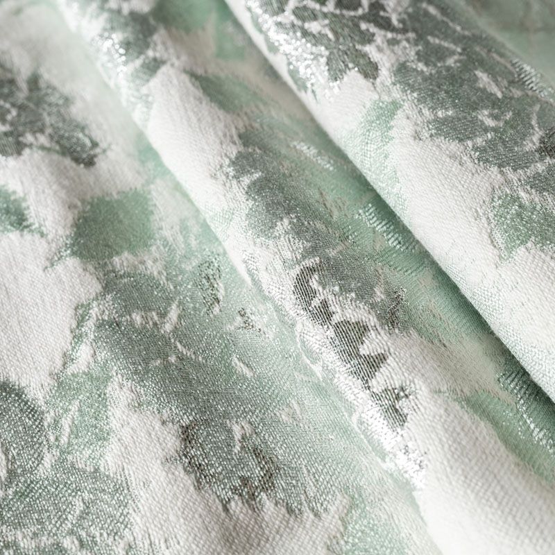 Итальянский хлопковый жаккард нежного мятного оттенка с добавлением люрексовой серебристой нити с растительным дизайном. Ткань легкая, но плотная, поверхность матовая, фактурная, хорошо драпируется и держит форму, не тянется и не просвечивает. Подойдет для пошива нарядных вечерних костюмов, платьев-футляров в стиле Dior, жакетов, топов, летних пальто, бомберов, юбок или шорт.